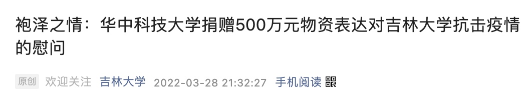 吉林大学 袍泽之情:华中科技大学捐赠500万元物资表达对吉林大学抗击疫情的慰问