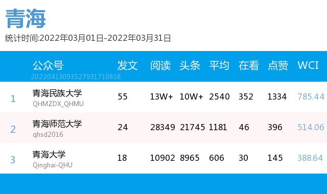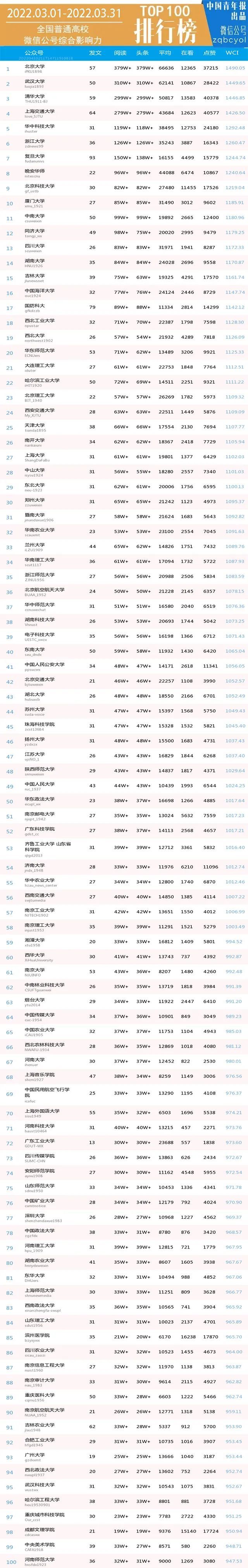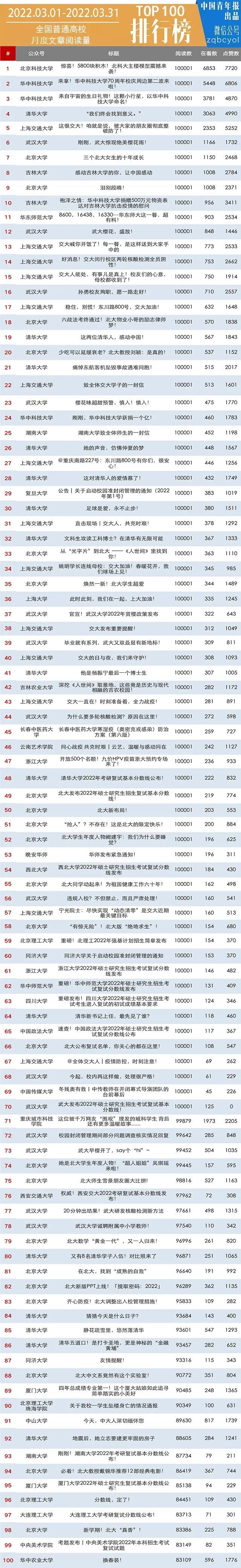 从2018年2月开始,中国青年报每月推出全国普通高校微信公众号综合影响力排行月榜以及相应的文章阅读量排行榜。