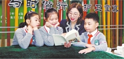 武汉市光谷第十小学(武汉小学光谷分校)校长王凌和孩子们在一起。