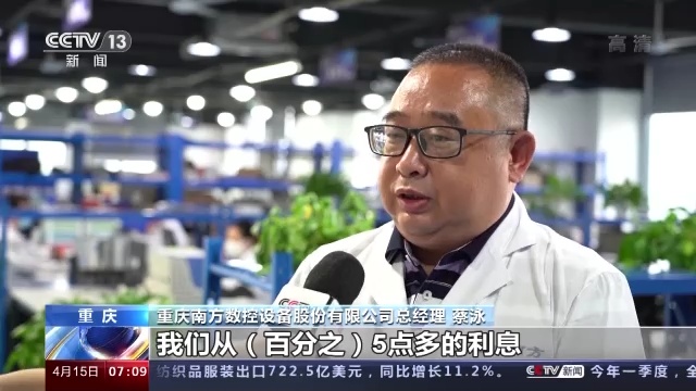 重庆南方数控设备股份有限公司总经理 蔡泳:我们从(百分之)5点多的利率降到了3.85%,这个支持力度是相当大的。