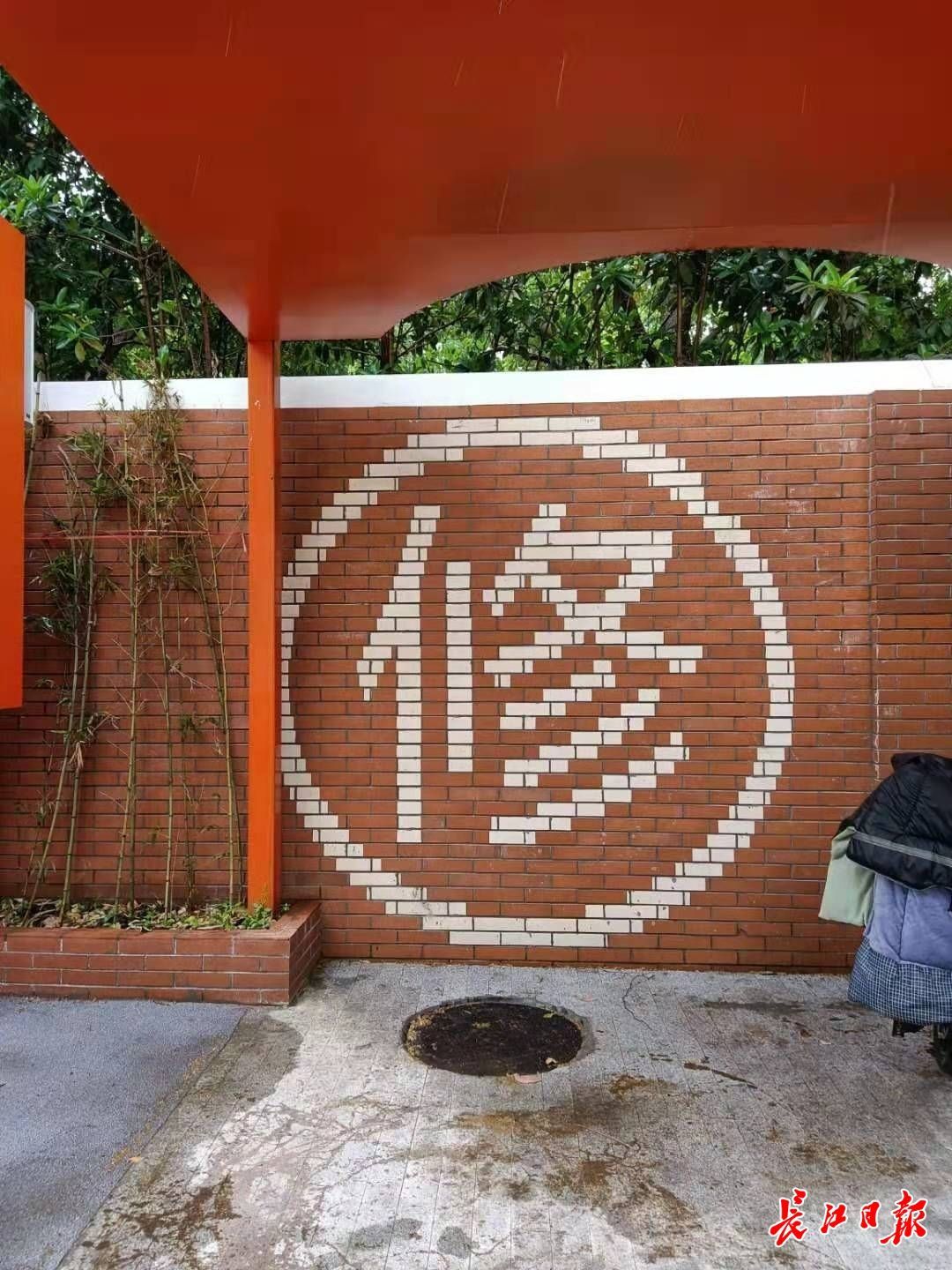 在惠济路42号小区,景观长廊文化墙上,一个在红砖间用白色彩砖嵌入后拼成的“修”字,特别引人注目。
