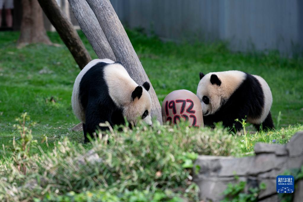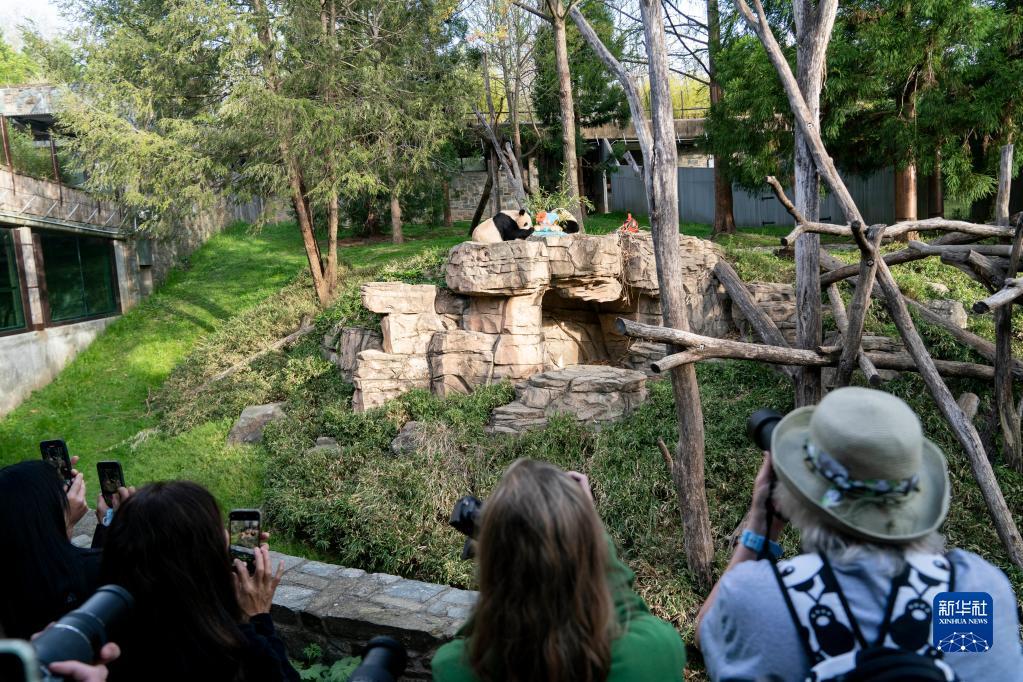 当日,位于美国首都华盛顿西北部的史密森学会国家动物园举行活动,庆祝大熊猫抵达美国暨该动物园大熊猫项目50周年。