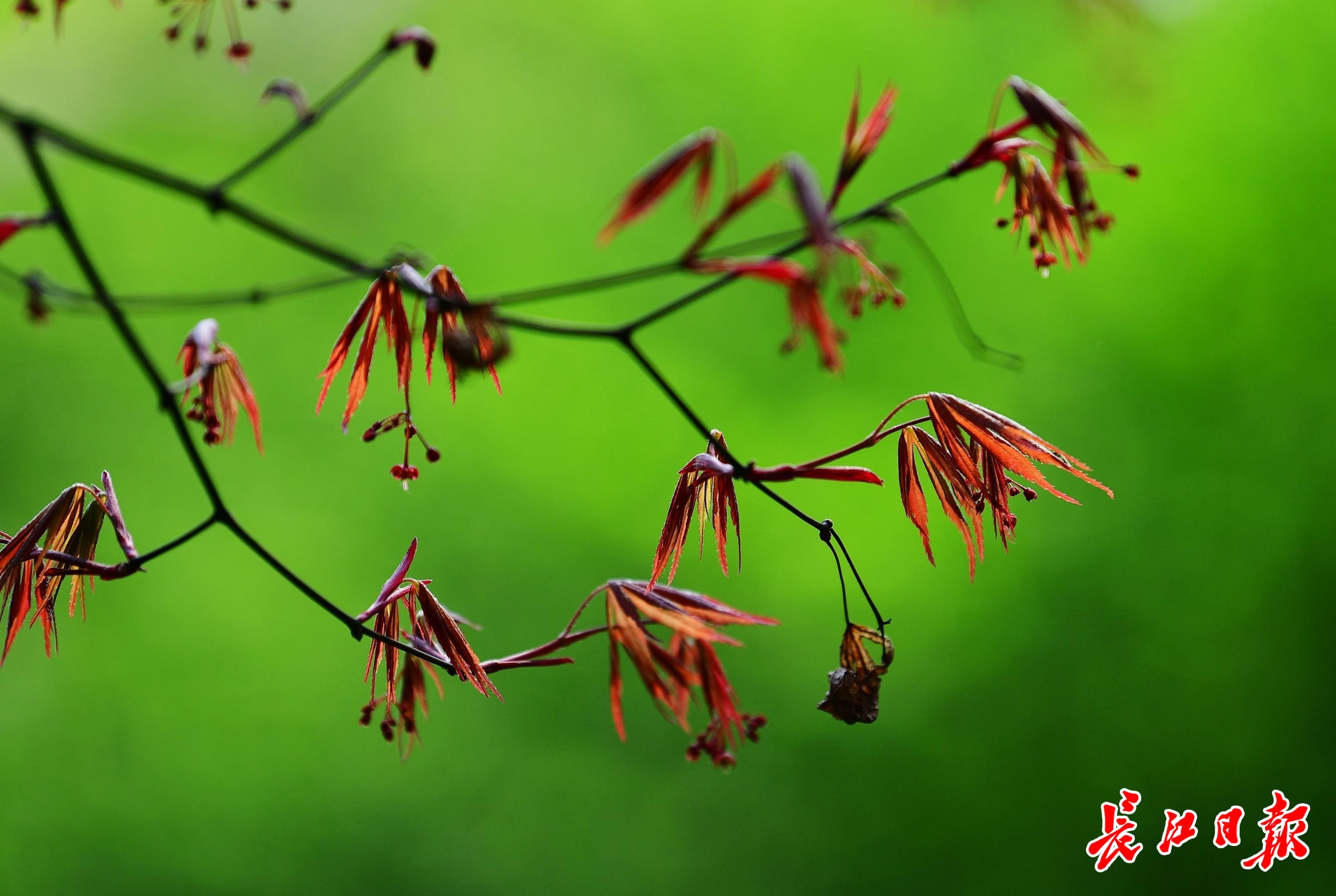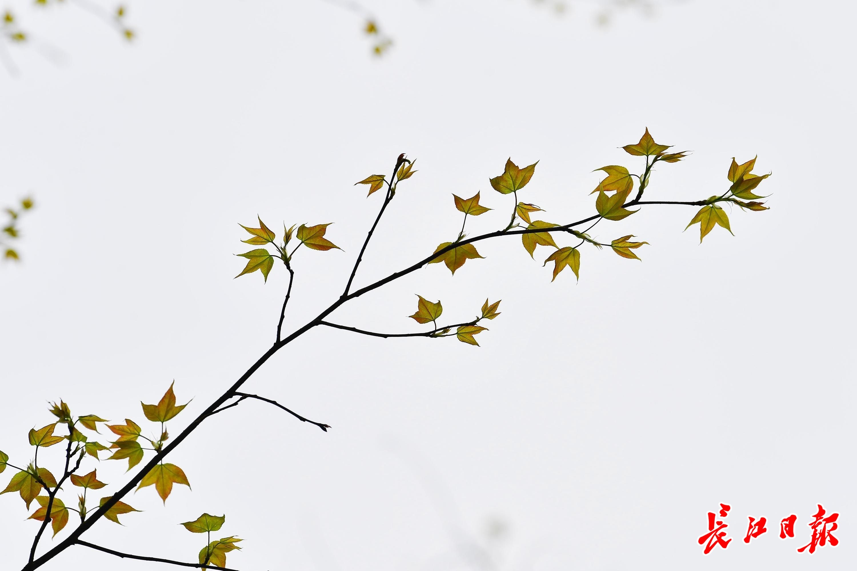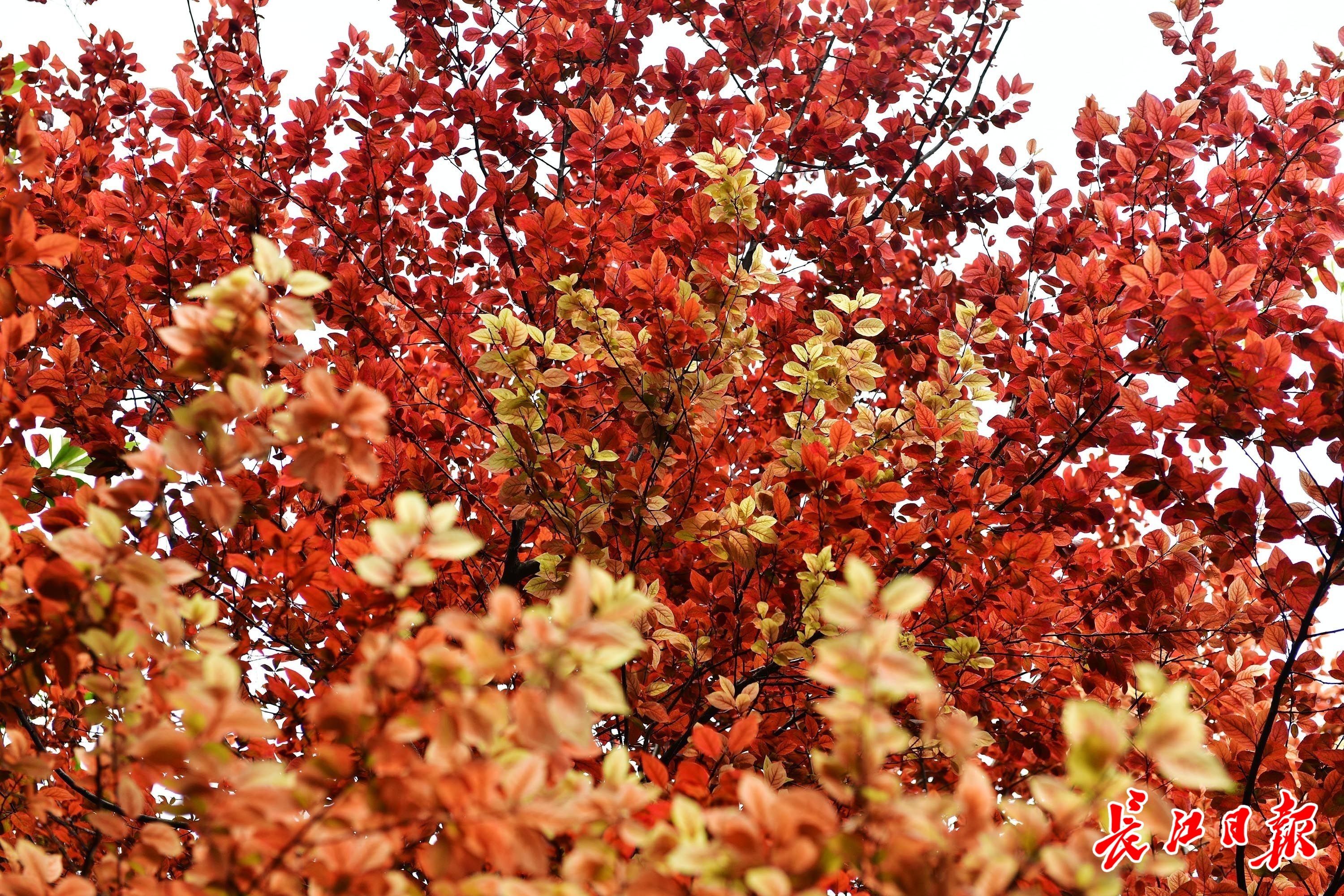 长江日报大武汉客户端4月17日讯 4月17日,武汉天气转晴,街头、公园的春花已渐渐开尽,不少树木萌发了新叶,有些形状独特,有些色彩艳丽,有些更如盛开的花朵有颜有色,极具观赏性。(长江日报记者李永刚 摄影报道)