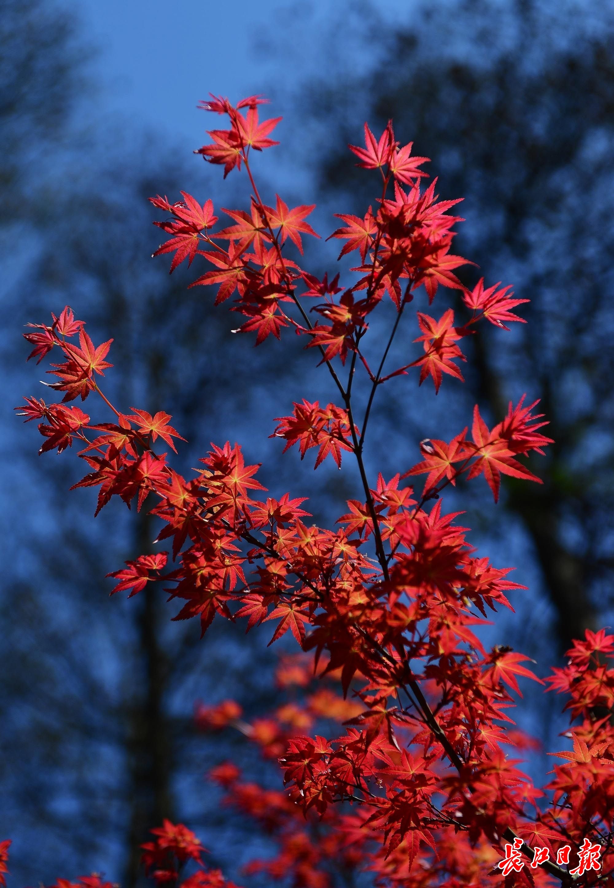 鸡爪槭的红叶比花更浓艳。