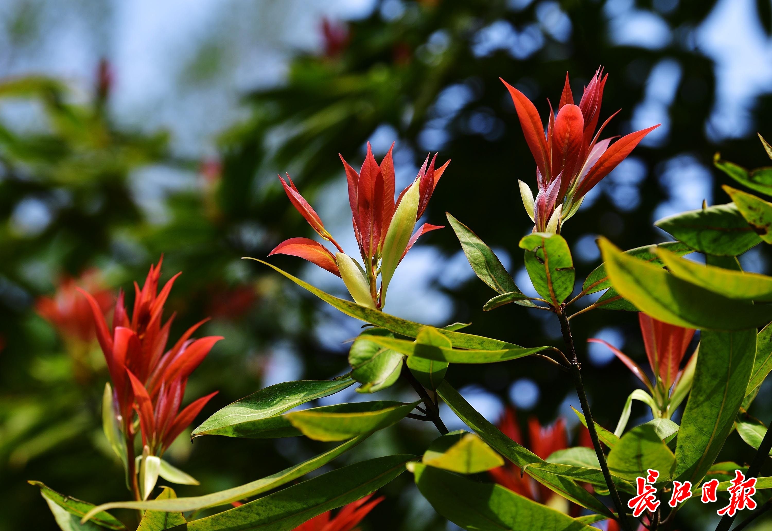 润楠枝尖的新叶,像红色的花朵盛开。