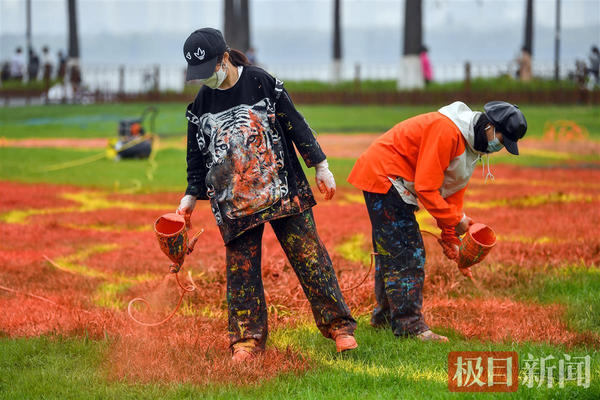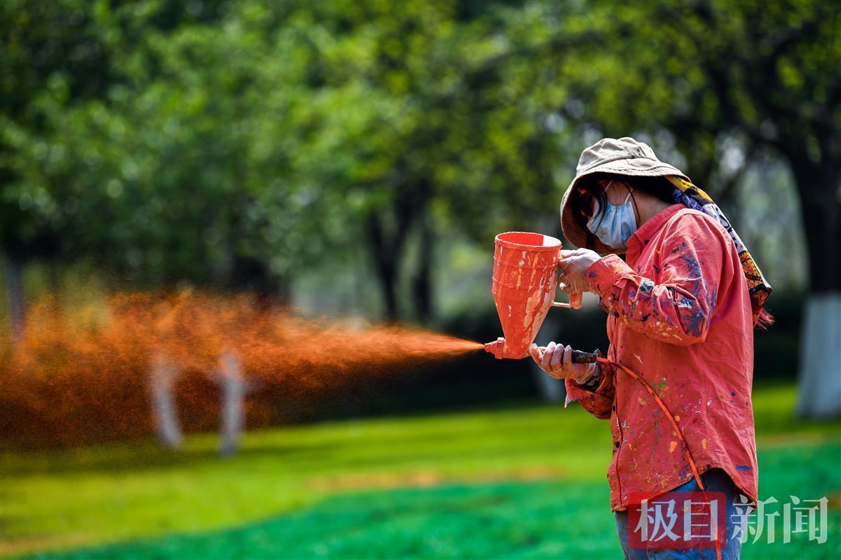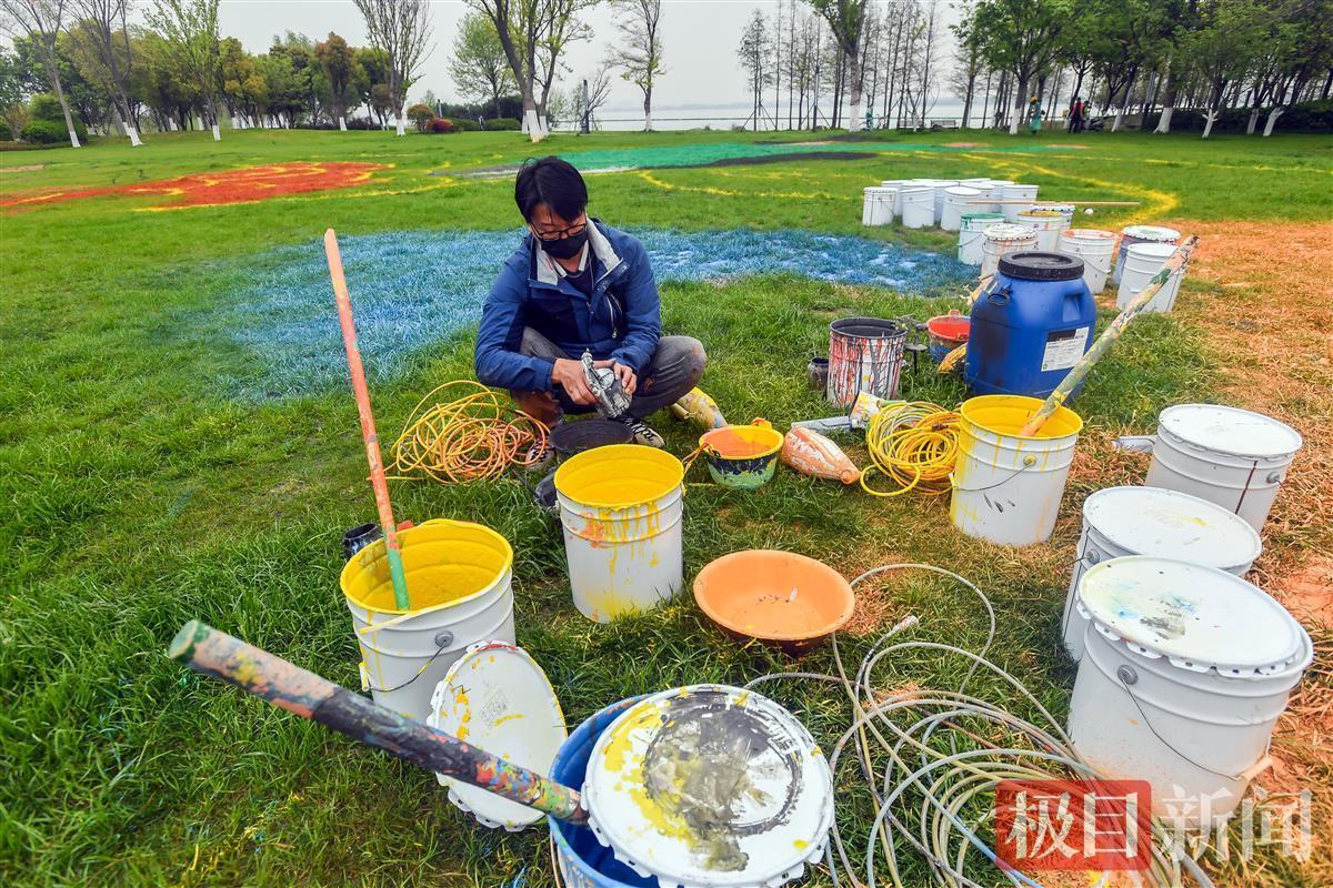这不是普通的装修涂料,而是联合华中师范大学专家团队,定制的一批无污染可降解颜料,除了成本昂贵,抛洒到草坪之上时,用量也大大超出了预期。