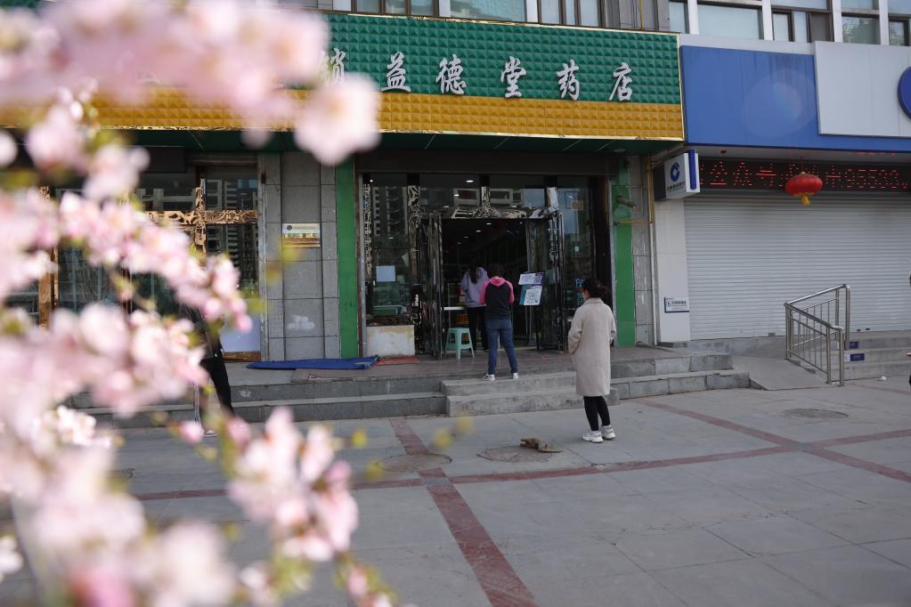 4月17日,在西宁市城西区的一家药店门口,市民正在有序排队购药。新华社记者 李宁 摄