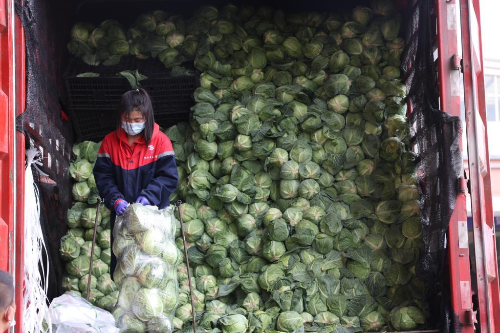 4月15日,在青藏高原农副产品集散中心,商户正在分装蔬菜。新华社记者 李宁 摄