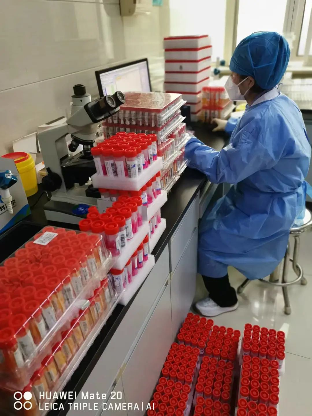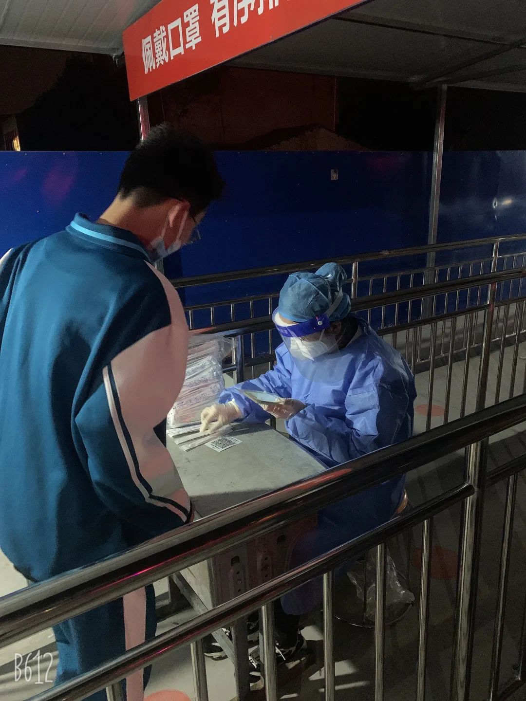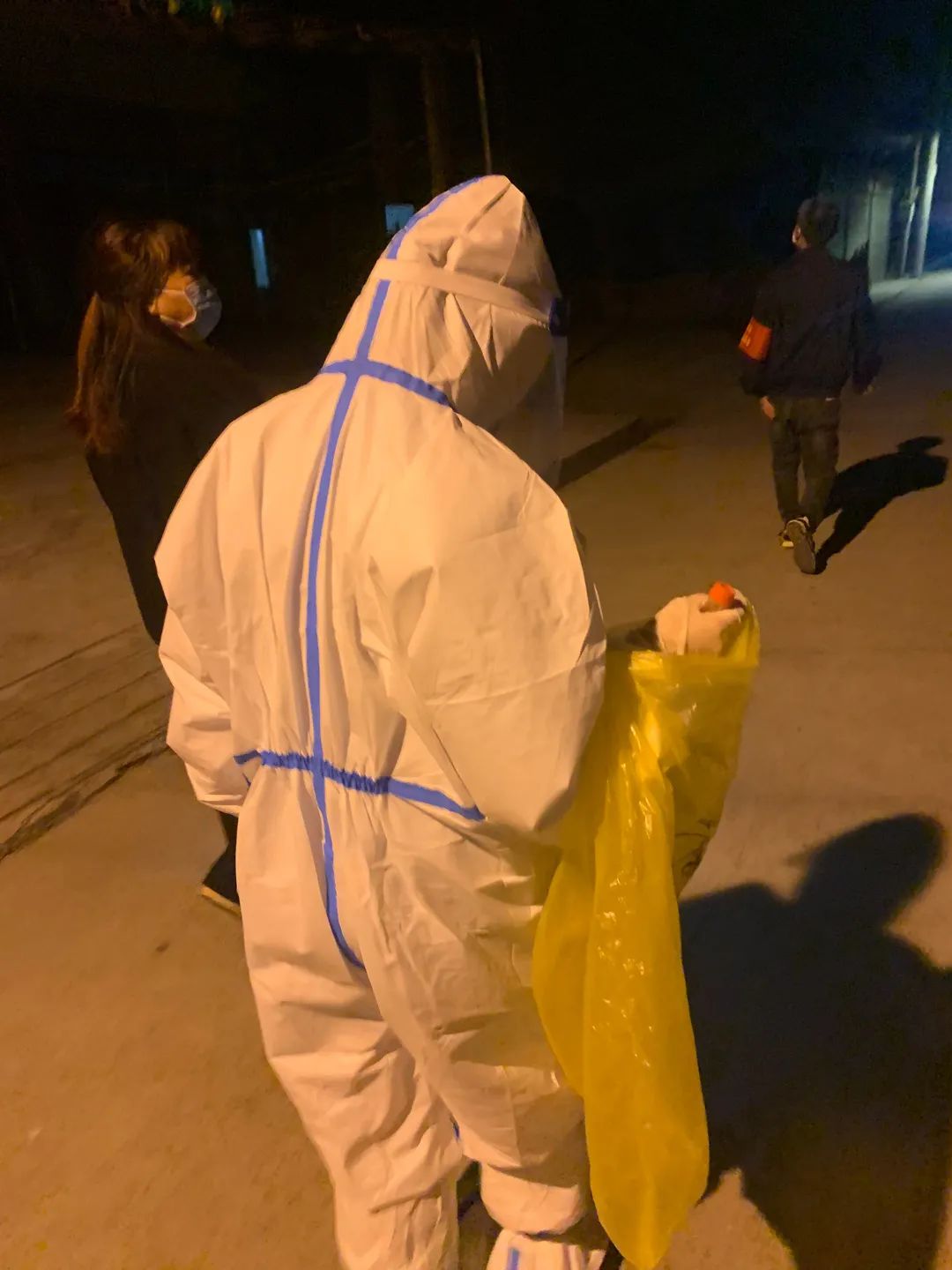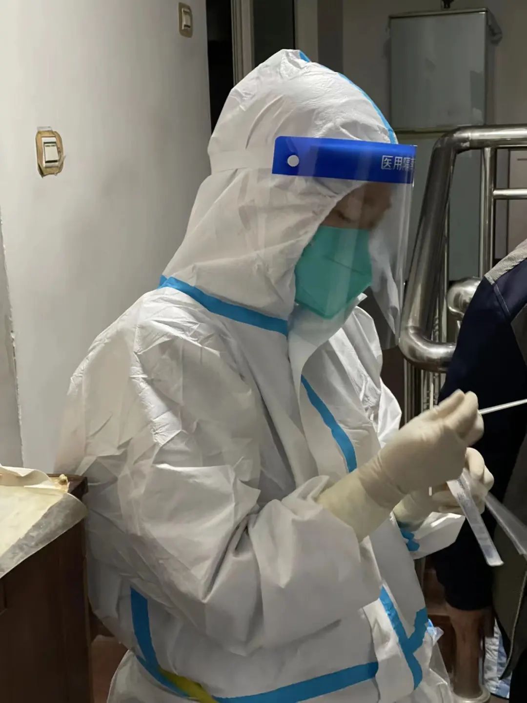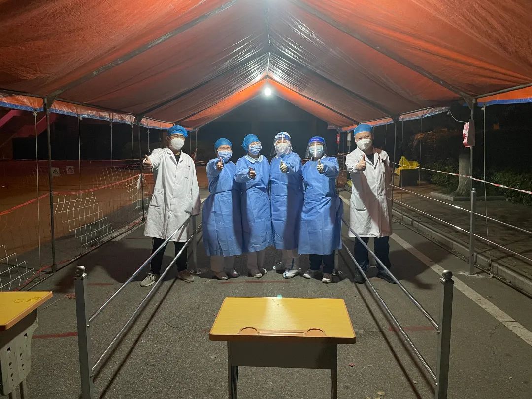 外采工作不可谓不繁重,有些楼栋较分散,且高层居多,这成了年轻同志锻体的地方。“大家累了吧,我年轻,我来跑会儿,你们先休息下吧!”儿科预备党员贾真主动承担着扫楼上门采样的任务,从5点到7点不间断地爬楼让她从容收获了40户核酸样本,并美其名曰劳其筋骨。