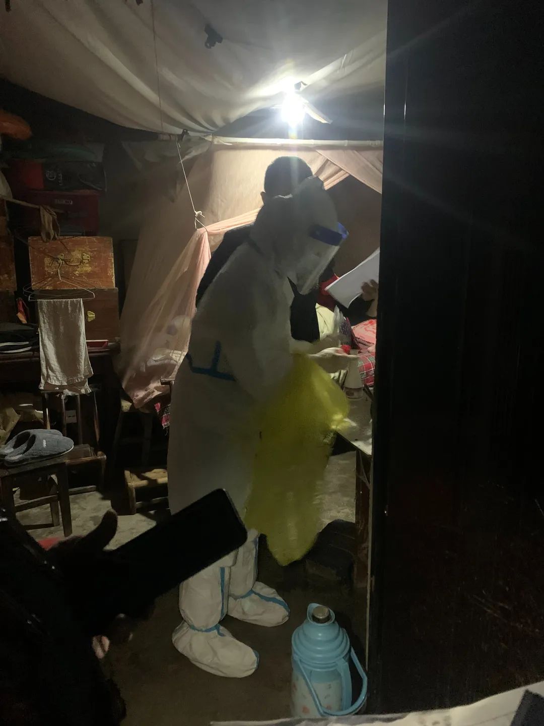 晚上8点,核酸检测长队终于见到了队尾,但离医护人员休息的时候还早。麻醉科护士长李贝也接过了扫楼上门采样的接力棒。“奶奶,我们给您来做核酸来了!”厚重的防护服和面屏也遮不住她眼里的笑意。“这个孩子态度真好!”“你们辛苦了,坐下喝杯热水吧。”一句句关心的话也暖着医护人员们的心。