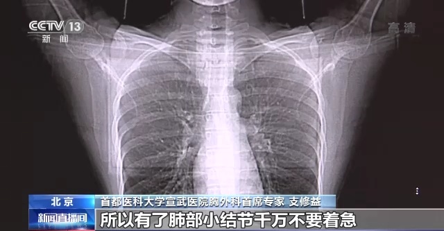 首都医科大学宣武医院胸外科首席专家 支修益:目前很多人还是过度恐惧肺小结节,其实肺小结节并不等于肺癌,可以说您是第一次做胸部CT检查,发现的肺部小结节95%以上都是良性的病变,所以有了肺部小结节千万不要着急,要定期复查,而不是急于手术。根据复查,根据我们的观察,如果小结节的直径大小发生了变化,密度发生了改变,边缘出现了异常,我们再进行进一步的跟踪,看看是否需要临床干预。