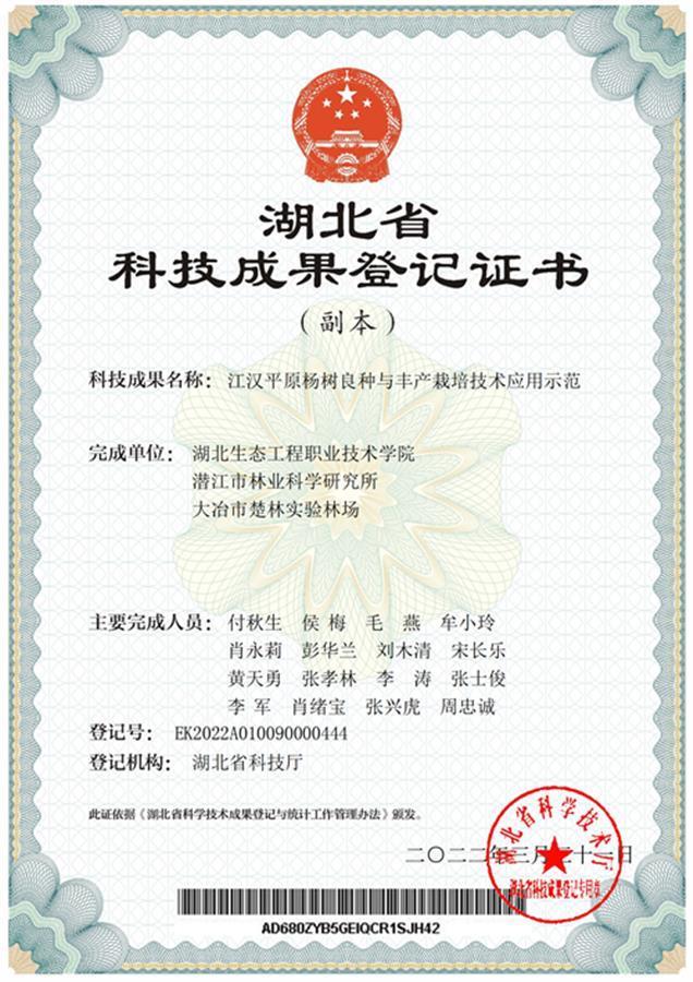 两个项目圆满完成合同各项指标任务,在2021年11月25日顺利通过湖北省林业局验收。项目组在获得项目通过验收并获得主管部门验收证书后,及时进行总结提炼并登记成果,于日前通过湖北省科技厅的审核,获得成果登记证书。