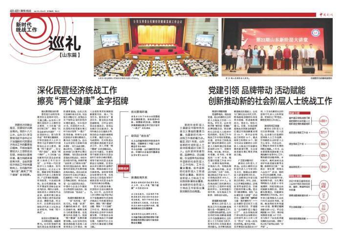 民营经济活则全局活,民营经济兴则全局兴。党的十八大以来,山东深入学习贯彻习近平总书记关于加强新时代民营经济统战工作的重要指示精神,不断加强民营经济人士思想政治引领,持续优化营商环境,着力构建亲清政商关系,全省民营经济统战工作驶向蓬勃向上、生机盎然的“春天里”,擦亮了“两个健康”金字招牌。