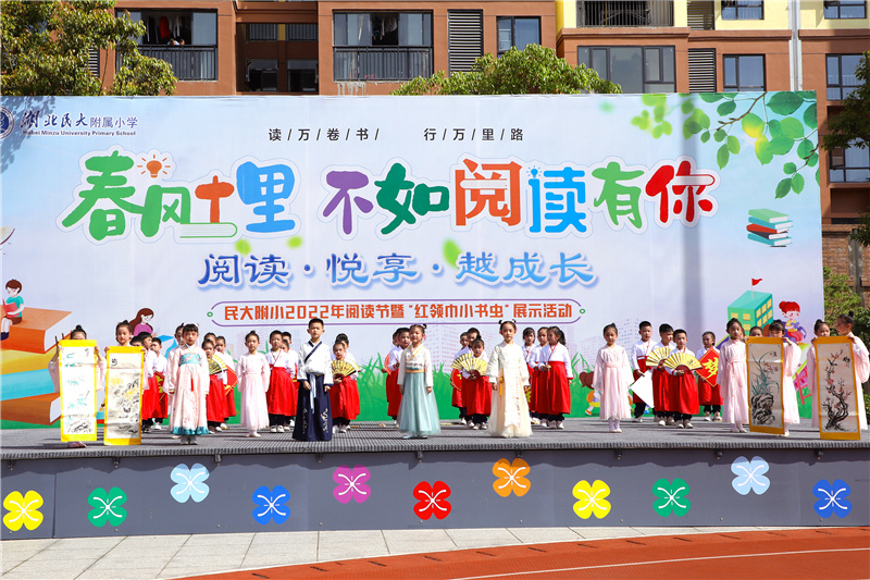 湖北日报讯(通讯员杨华丽、田艳)春光如画又如诗,正是少年读书时。4月18日,在世界读书日即将来临之际,湖北民族大学附属小学举办“阅读·悦享·越成长”读书节暨“红领巾小书虫”展示活动。