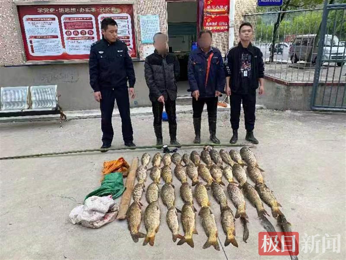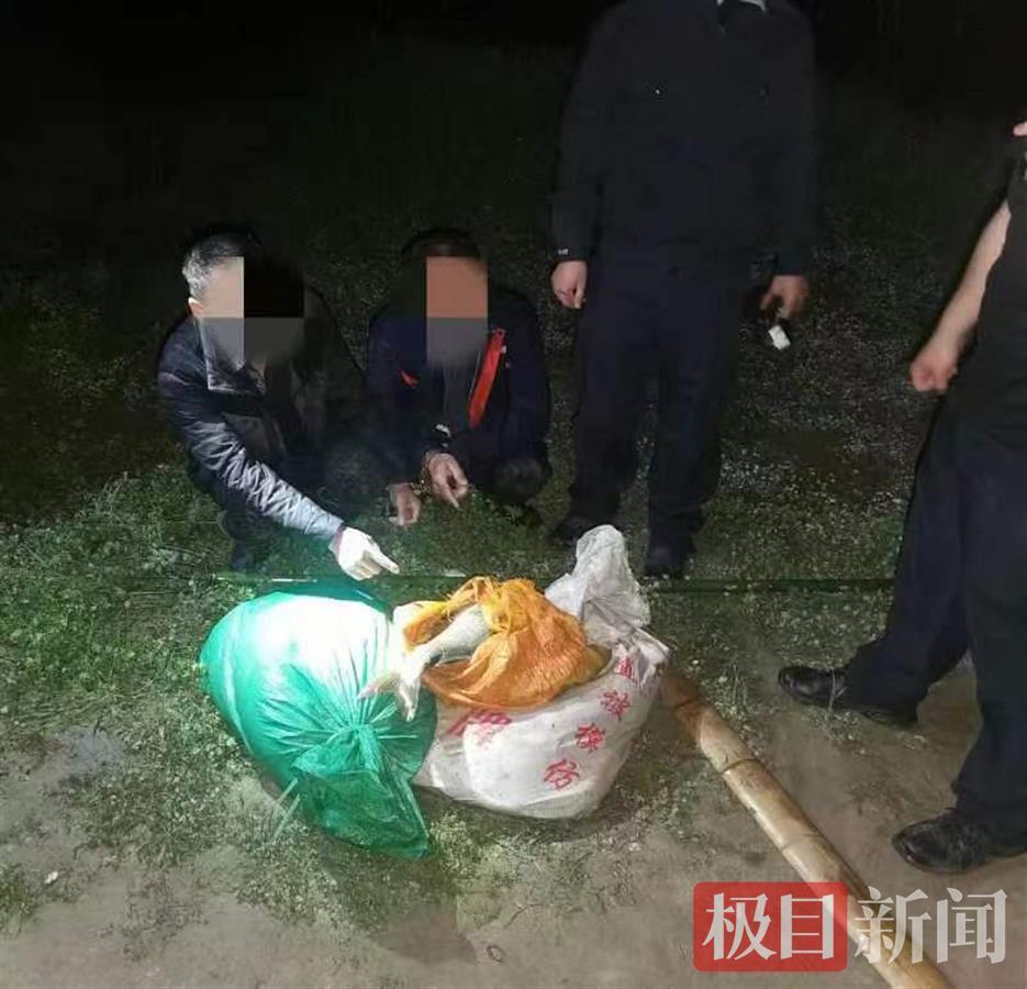 4月19日凌晨,长航公安石首派出所民警在巡逻至鱼尾洲水域时,发现有两名男子正在使用鱼叉捕鱼,民警立即上前将捕鱼男子罗某和黄某控制。经过清点,在民警抓获前的短短半个小时内两人叉鱼达39条,共计67.72公斤。