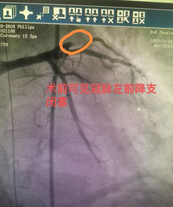 心内科团队历经2个小时,紧急进行冠状动脉造影和左前降支支架置入术,并给患者置入IABP(主动脉内球囊反搏)。复查造影显示支架置放成功,无残余狭窄。