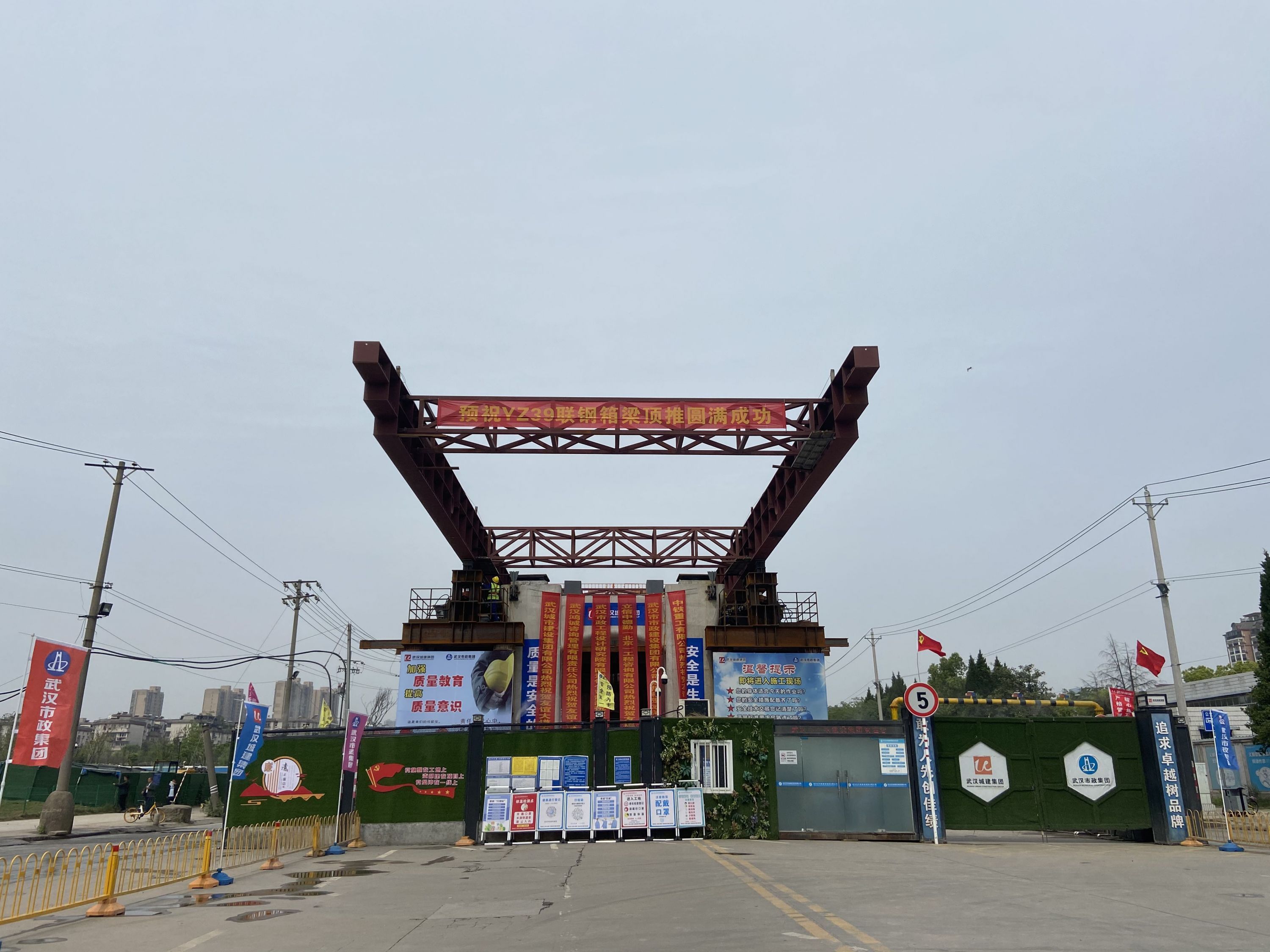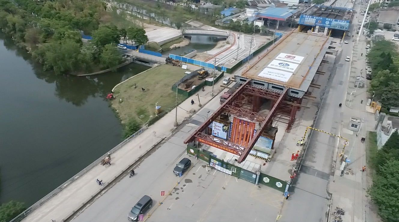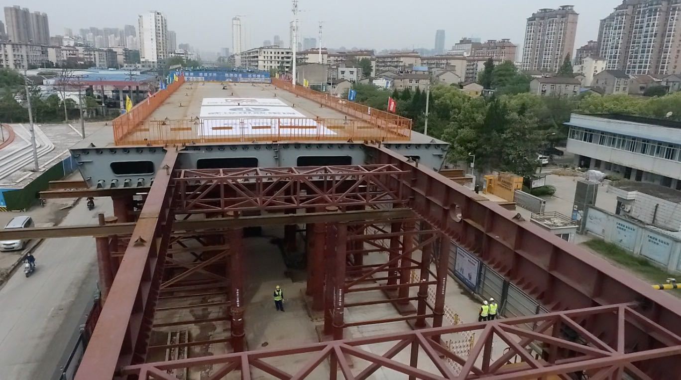 施工方武汉生态投资集团下属市政建设集团隧道公司二分公司项目负责人李焕兵介绍,高架桥的建设需跨过北洋桥,但北洋桥1996年建造,设计荷载只有30吨,不能满足在上面立临时支架和汽车吊装站位安装的条件。为了实现对北洋桥现状的保护,降低安全风险,项目决定采用整体拼装、一跨整体顶推就位的施工工艺。