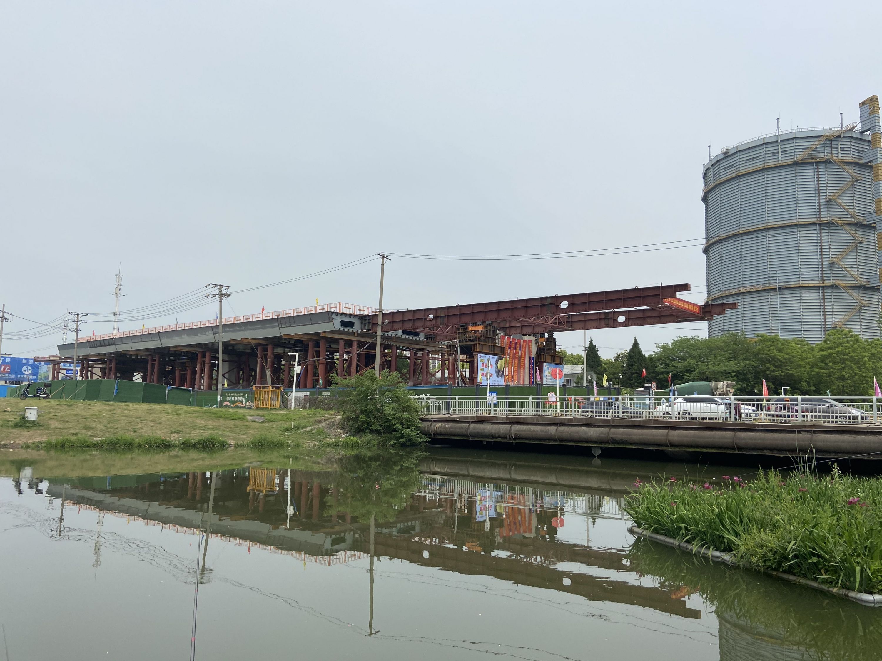 钢箱梁要平推跨过北洋桥。记者王谦 摄