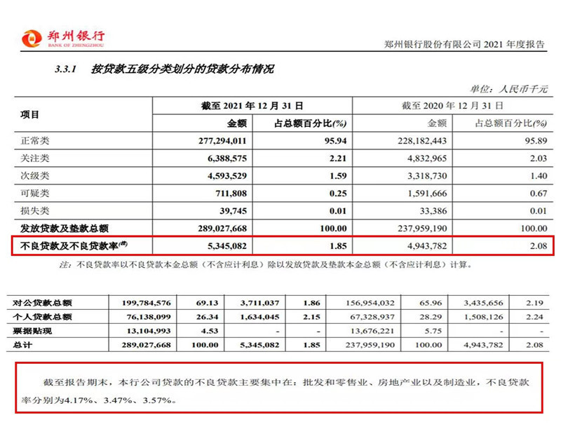 3月31日,郑州银行披露2021年度业绩报告(A股)(以下简称“年报”)。郑州银行被处罚的问题主要集中在贷款业务和房地产领域,这些问题印证了郑州银行2021年度业绩报告(A股)中的相关数据。