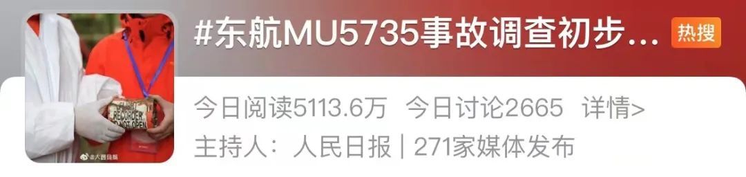 当天,话题#东航MU5735事故调查初步报告发布#迅速冲上热搜第一,却有网友对报告中披露的信息量表示质疑。