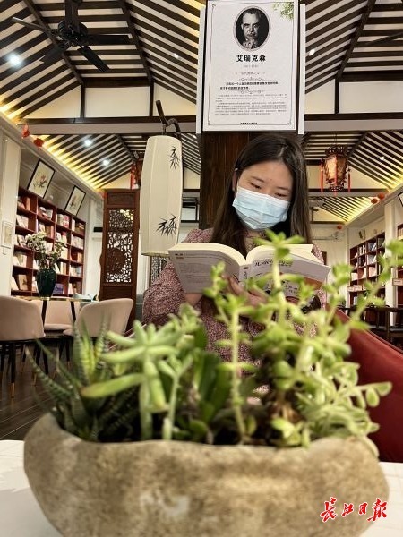 在世界读书日前夕,长江日报记者走进这家宁静小院里品味独特的书店,看到有读者在找参考书写心理学论文,有人在借阅典籍,有人品着咖啡浏览,有人在琢磨品鉴百年古城砖、古砚,还有人在网红绿台灯下读书打卡……