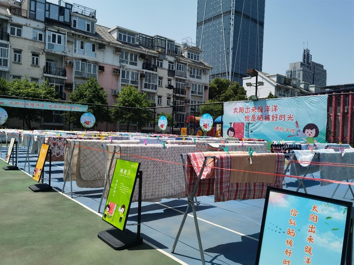 “我们家住在2楼,虽然也能在阳台晾晒,但阳光被繁茂的树木遮挡,被子总也晒不透。”家住A栋的居民池先生介绍,看到小区群里发布“晒被节”活动后,他立刻就报了名,“家里冬天的被子晒好正好装箱,去年放置的夏天空调被晒好后正好拿出来用。这次集中晾晒,不仅被子晒得更充分,还更美观,我就希望这样的活动能一直持续办下去。”