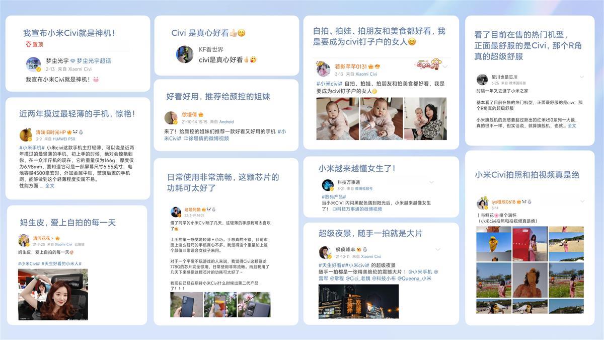 “去年发布的小米Civi,仅仅半年时间就收获了一大波铁杆粉丝,大家对这款产品的好评远远超过了我们的预期,这也给我们更多的动力去持续打磨小米Civi系列。”小米Civi产品经理胡馨心表示,“小米Civi 1S从用户需求出发,在设计、美拍和流畅耐用三个口碑极佳的方面进行了全面的体验升级,这是一款让你一见倾心,一触生情的手机。希望更多的朋友去体验一下这款手机,我们很有信心,你一定会爱上它。”