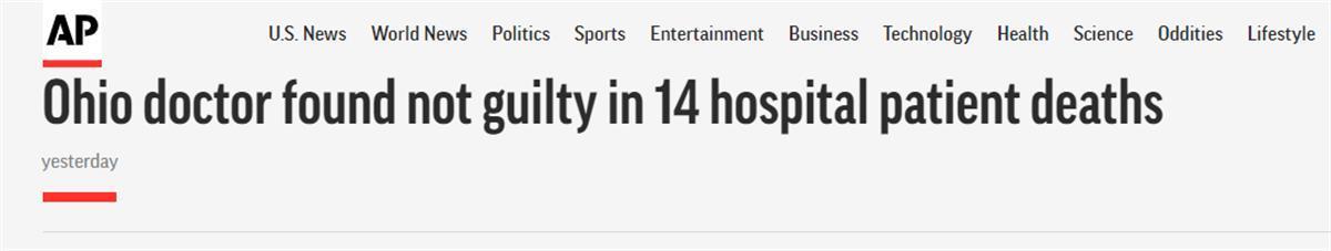 综合美联社、《华盛顿邮报》最新报道,美国一陪审团4月20日裁定,被控过量使用止痛药致多名患者死亡的一名俄亥俄州医生无罪。