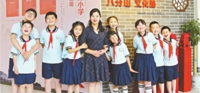 江夏区文化路小学校长李秀丽和孩子们在一起。