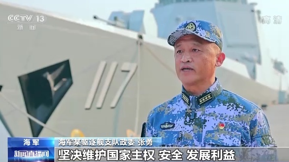 海军某驱逐舰支队政委 张勇:一代代海军官兵在大风大浪的锤炼中迅速成长起来。走向深蓝、向海图强,人民海军坚决维护国家主权、安全、发展利益,为民族复兴和人民幸福保驾护航。