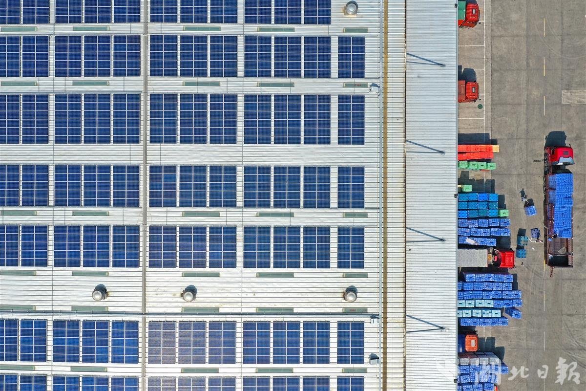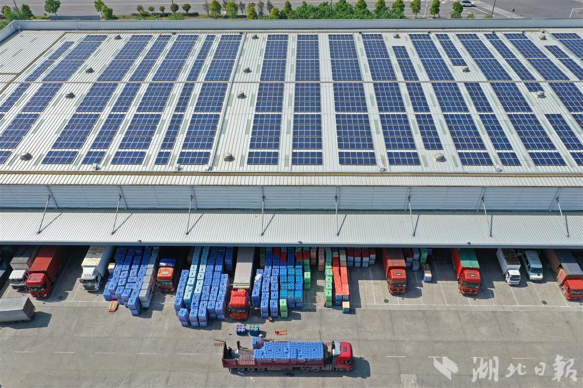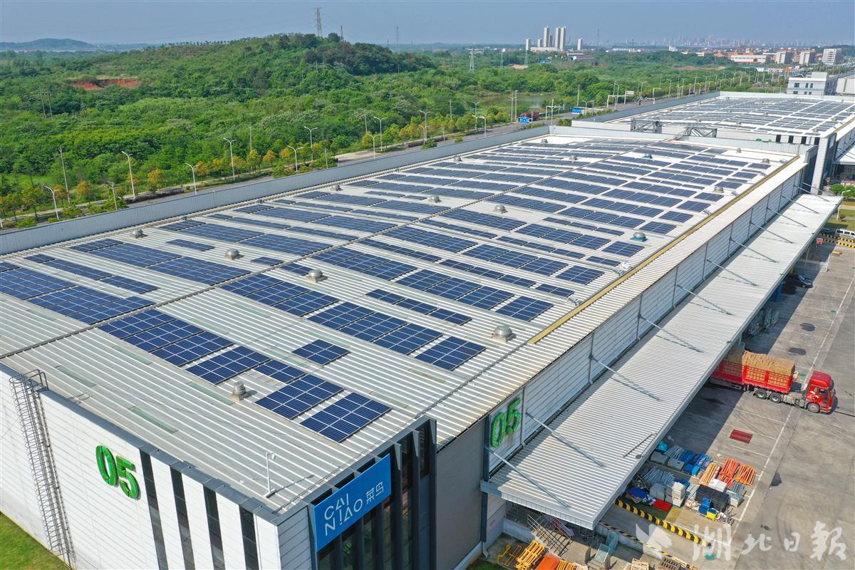 4月24日,菜鸟网络武汉江夏园区自动化仓内,繁忙的分拣作业流水线如往日一样高速运转,其动力并非来自传统能源发电,而是来自仓库屋顶的太阳能光伏发电系统。广阔平坦的仓库屋顶上,一排排光伏板整齐排列,在阳光照射下熠熠生辉。