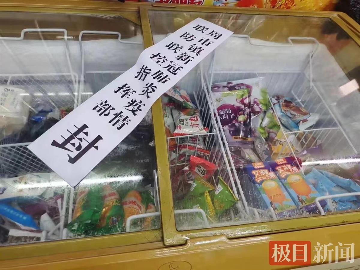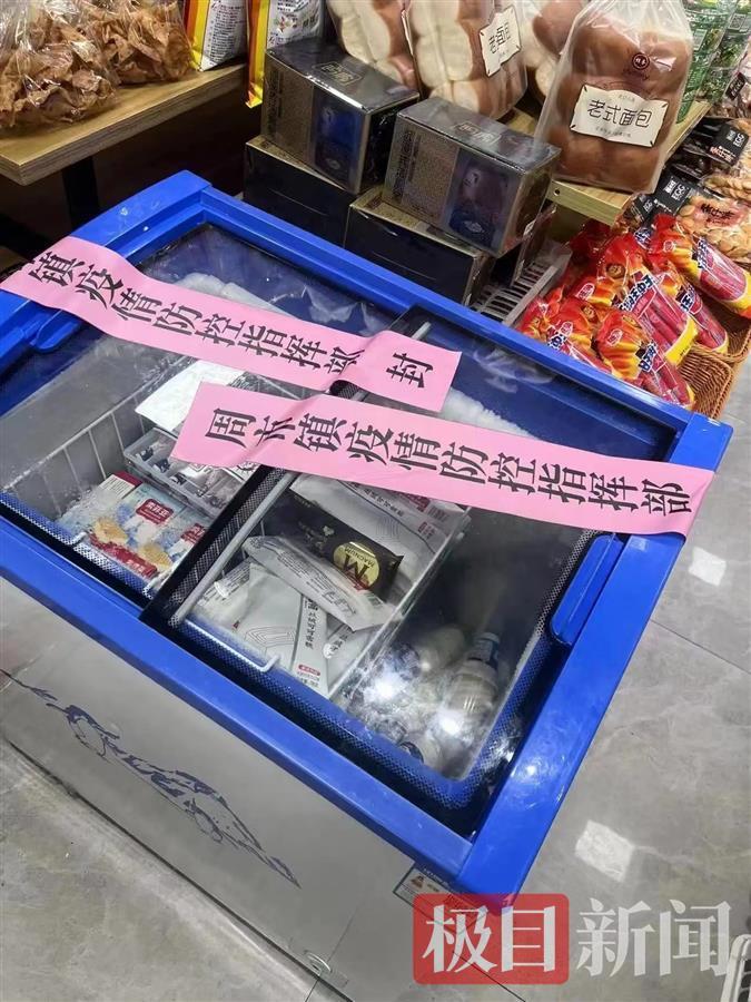 24日,极目新闻记者致电周市镇多家超市,一超市老板陈先生称,冰柜上的封条是23日上午由防疫工作人员贴上的,但没告知原因,也没说什么时候解封,只说“有问题”。