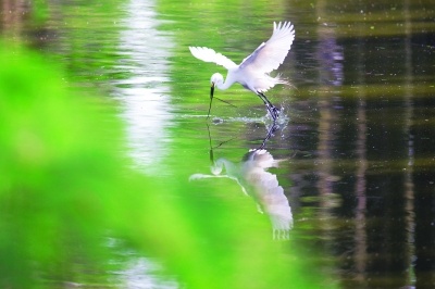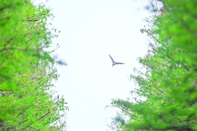 4月24日,在武汉新洲涨渡湖水上森林,未见群鸟飞,但闻鸟语响。夜鹭、白鹭藏在池杉林深处,不时飞起又藏身。据悉,从2016年开始,涨渡湖湿地保护区的鸟儿团队在不断壮大,从几千只发展到上万只,涨渡湖水上森林已成武汉鹭鸟天堂。