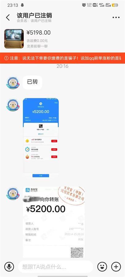 收到对方发来的转账截图,小涛将电脑交给了前来取货的“跑腿小哥”。第二天,小涛查询发现,买家转款并没有到账,平台上也无法联系买家。意识到可能被骗,他赶紧到派出所报警。