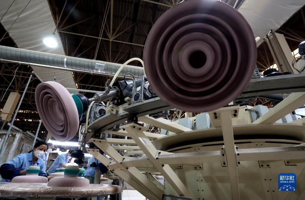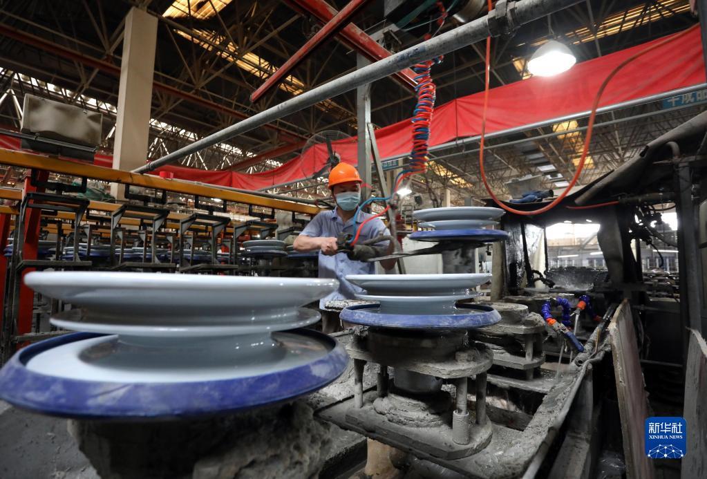4月25日,工人在江苏苏州电瓷厂股份有限公司生产车间忙碌。