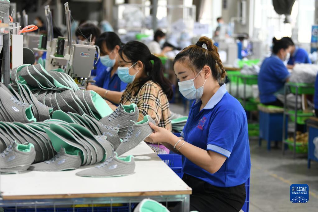 4月25日,在福建福州仓山区一家鞋企生产线上,工人在检验出口皮鞋。当地通过落实各项惠企政策,进一步加大助企纾困力度。
