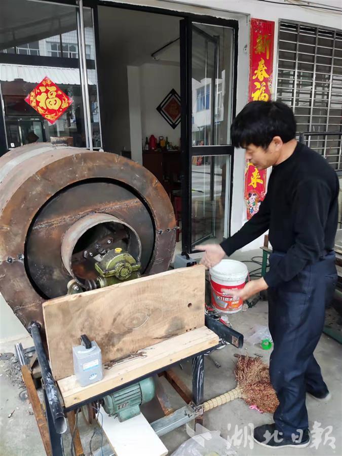 湖北日报讯(通讯员 陶火应)武汉市新洲区道观河风景区王家河村村民陶成芳,宅家一月,造出一台茶叶理条机和一台茶叶杀青机。