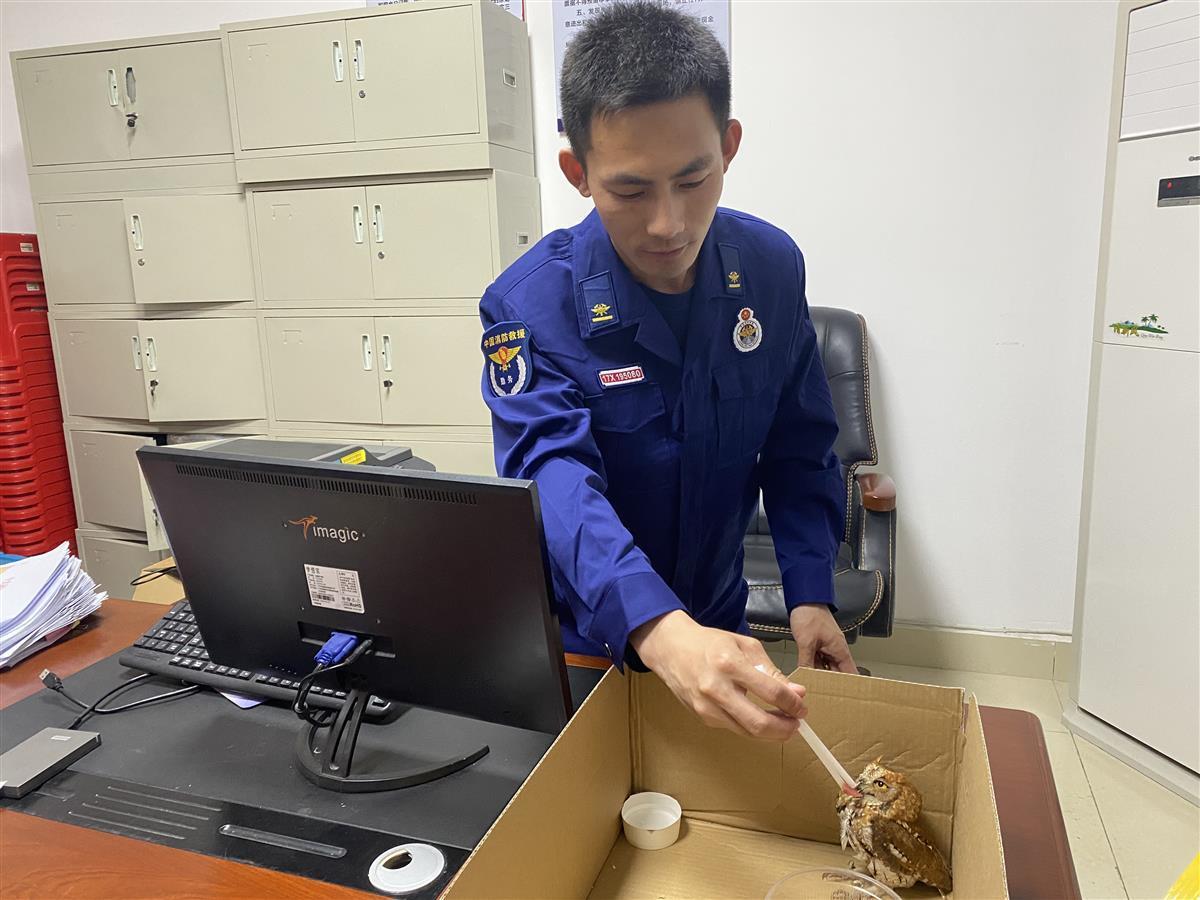 消防员还发现,该猫头鹰头部有明显伤痕,若不及时救治,可能存在生命危险。由于消防救援人员的日常工作中有涉及到野生动物保护的相关专业知识,该大队消防员商量,将受伤的猫头鹰先进行喂养,待康复后再放回大自然。这个主意得到了大家的一致赞同,不少消防员纷纷正当受伤猫头鹰的专属饲养员。