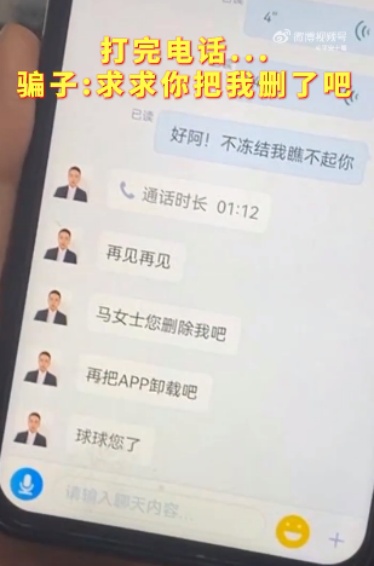 1、反诈民警接诈骗电话,骗子:求求你把我删了吧 21日,湖北十堰一女子报警称自己无意间点到一个链接,随后“银行工作人员”来电称其银行卡被冻结,需要打款一万元解冻,否则就去报警并起诉她。民警当即表示此为电信诈骗,并接听了骗子打来的电话告知自己的身份。挂断电话后,骗子发来信息:“求求你把我删了吧!”(@平安十堰)