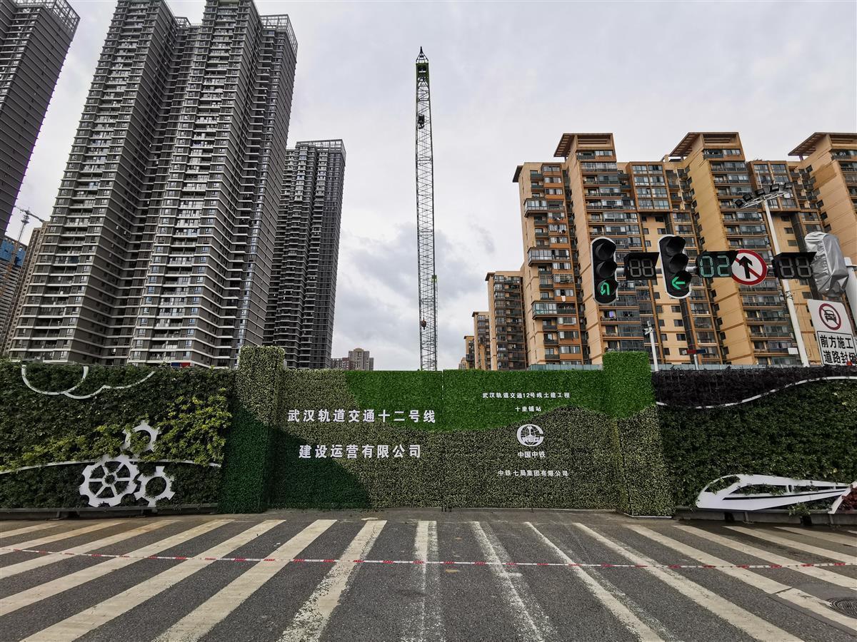 湖北日报讯 (记者成熔兴、通讯员郑忠祥)4月26日,在汉阳大道武汉地铁12号线十里铺站施工现场,沿路的施工围挡上铺满了立体鲜花、绿植,站在围挡前,映入眼帘的是一片片花墙美景。