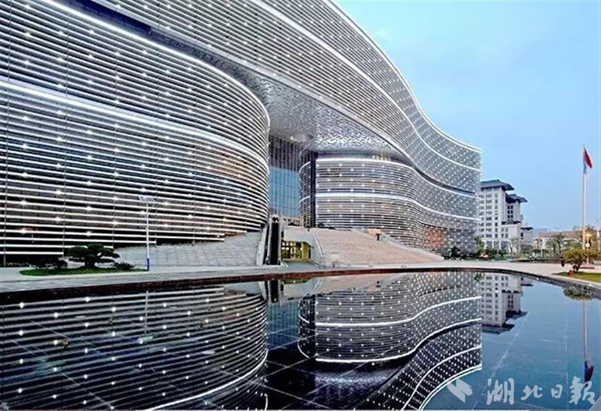 新馆主体造型以“楚天鹤舞、智海翔云”为立意,创造性地提出运用东方绘画的线性之美,勾勒轮廓、表现形体、塑造空间。建筑沿湖层层退台,形成高低错动的空间形态,内部采用轻质灵活的隔断,可对空间作出弹性功能调整,同时是湖北省节能示范项目。