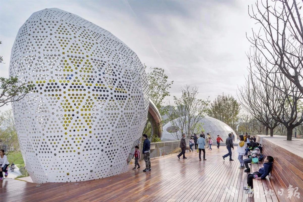 随着市民对亲子休闲活动的需求,近年来武汉市不断推出各种类型的游玩场所。2019年建成的万科奇趣蛋壳公园,以别具一格的景观设计,兼具艺术与趣味的互动装置引动人气,方寸之地的社区公园迅速成为网红地,被武汉市民称作“宝藏遛娃公园”。公园由上海张唐景观设计有限公司的两位不到50岁的首席设计师张东、唐子颖设计,也是张唐景观设计落地武汉的首个设计项目。