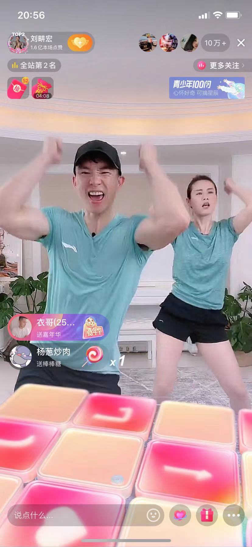 男艺人刘畊宏和妻子在社交平台直播带练健身火出圈。