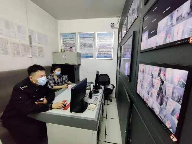 民警调取小区视频。通讯员唐时杰 刘煜 摄