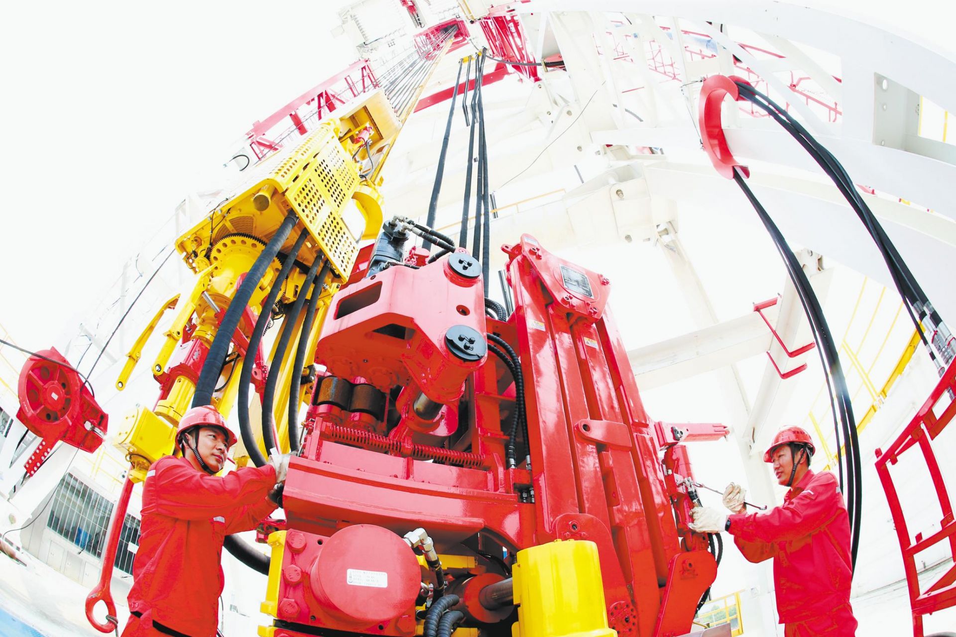 中国石化机械四机公司(荆州)员工在装配出口俄罗斯的9000米自动化石油钻机,“湖北造”石油钻采装备已出口48个国家。 (湖北日报全媒记者 张鸿 通讯员 付喜艳 王先 摄)