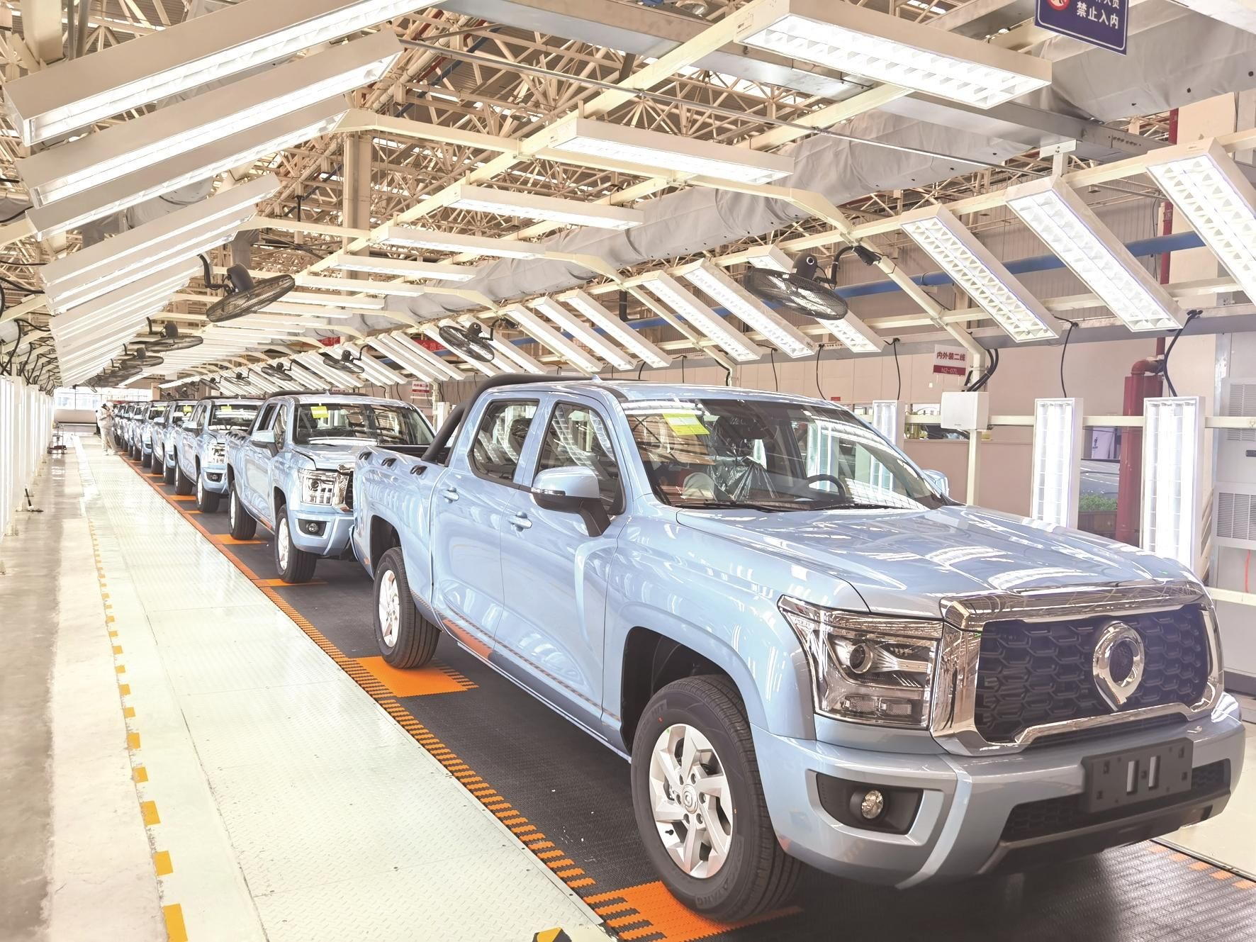 长城汽车荆门工厂刚刚下线的“金刚炮”皮卡。