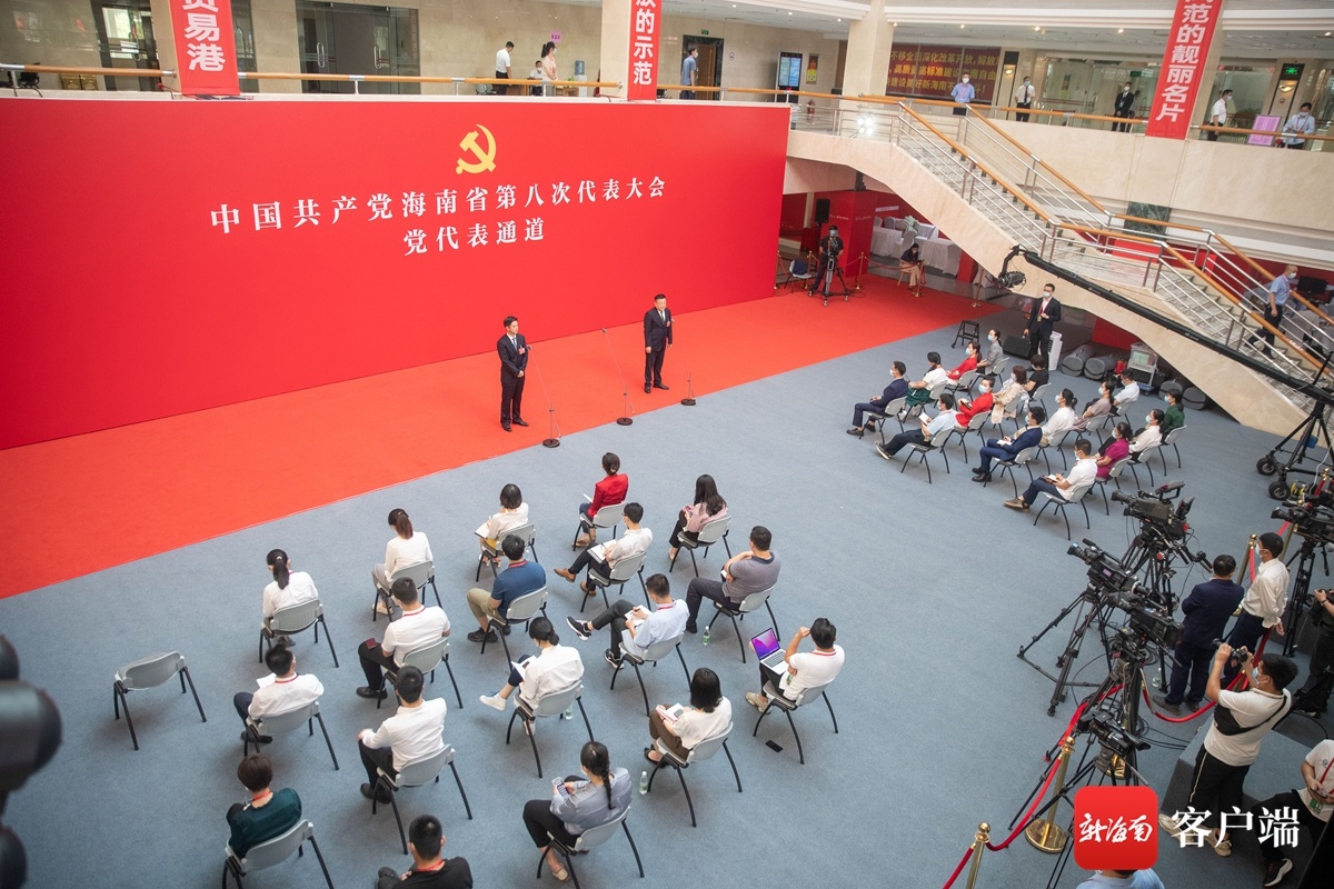 海南省第八次党代会第三场“党代表通道”集中采访活动现场。记者 刘洋摄