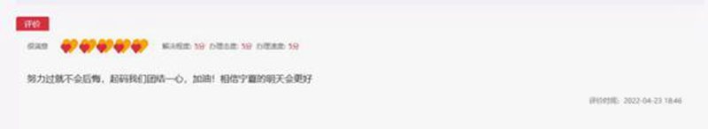 收到留言后,网友留言评价道,“努力过就不会后悔,起码我们团结一心,加油!相信宁夏的明天会更好。”