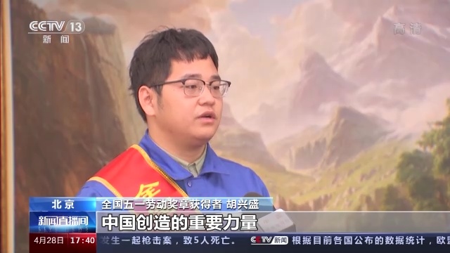 全国五一劳动奖章获得者 胡兴盛:习近平总书记强调,技术工人队伍是支撑中国制造、中国创造的重要力量,我一定不负总书记的谆谆教导和殷切期望,勤学苦练、深入钻研,勇于创新、敢为人先,用技能报国。