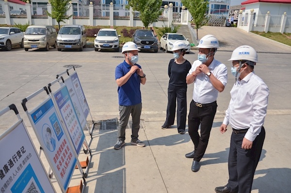 刘庆(右一)到武汉博宏中南科研设计中心建设项目检查防疫工作